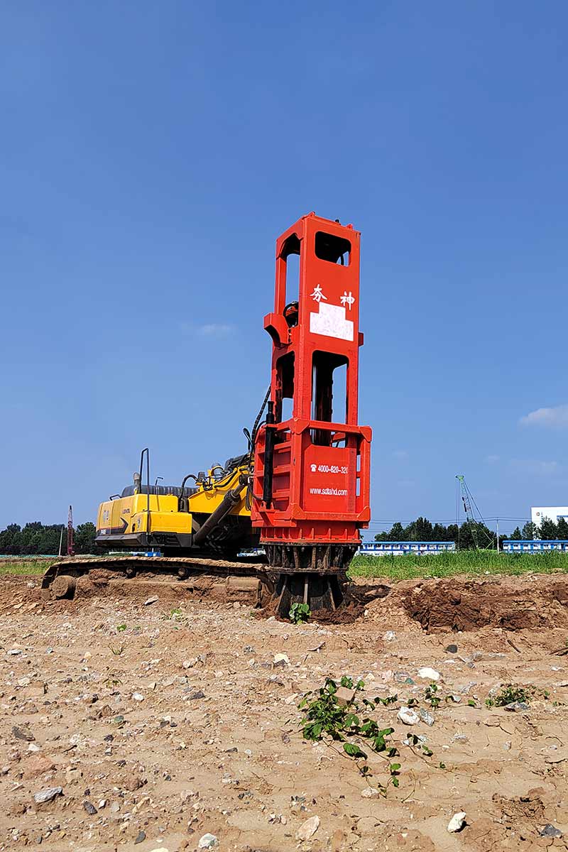 多功能液壓振動(dòng)夯,又稱振動(dòng)錘、挖掘機(jī)打樁機(jī)、挖掘機(jī)改裝打樁機(jī)等。挖掘機(jī)改裝多功能液壓振動(dòng)夯可打6米、9米、12米、15米、18米長(zhǎng)的鋼板樁,以及10米以內(nèi)的水泥預(yù)制樁。多功能液壓振動(dòng)夯主要由輔助臂、旋轉(zhuǎn)連接支架、主機(jī)箱、夾具、管道五部分組成。挖掘機(jī)多功能液壓振動(dòng)夯源于挖掘機(jī)液壓系統(tǒng)液壓,通過(guò)專利技術(shù)安裝變頻液壓管道。它可以導(dǎo)出主動(dòng)力,加速流量。